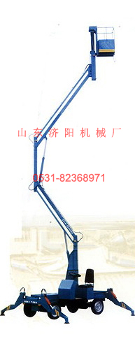 一、產(chǎn)品說(shuō)明:曲臂式升降機(jī)是山東濟(jì)陽(yáng)機(jī)械廠最新研制的高空作業(yè)設(shè)備,具有操作簡(jiǎn)單體積小,重量輕,價(jià)格便宜,外形美觀、作業(yè)面積大、移動(dòng)方便,特別是能夠跨越障礙物進(jìn)行作業(yè)等優(yōu)點(diǎn)、是理想的登高作業(yè)設(shè)備。廣泛應(yīng)用與車(chē)站、碼頭、賓館大廳、倉(cāng)庫(kù)、車(chē)間以及供電和建筑裝璜等部分需要高空作業(yè)的場(chǎng)合。