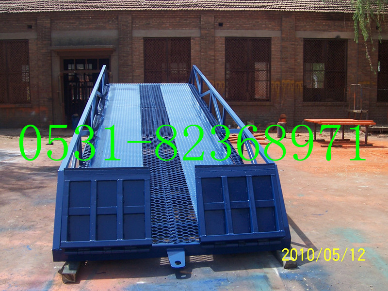 移動式液壓裝卸過橋廣泛用于無裝卸設(shè)備的貨臺及流動裝卸場所,是與叉車配合使用的貨物裝卸輔助設(shè)備。借助該設(shè)備,叉車能直接駛?cè)肫嚰b箱內(nèi)部進行批量裝卸作業(yè)。只需單人操作,不需動力電源。實現(xiàn)貨物的安全快速裝卸,既可減輕勞動速度,又能成倍提高裝卸作業(yè)效率,加快物料流通速度,獲取更大經(jīng)濟效益。