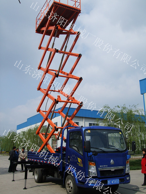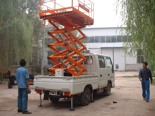 車載剪叉式升降平臺:車載式升降平臺是由升降平臺與汽車改裝的高空作業(yè)設(shè)備。該設(shè)備集四輪移動式與二輪牽引式于一身,采用汽車或電瓶車底盤作平臺底架,利用汽車本身發(fā)動機或直流電作動力,實現(xiàn)升降平臺的升降、行走功能,使升降平臺具有更好的靈活性和機動性,提高了高空作業(yè)效率,廣泛用于城建、油田、交通、市政建設(shè)等區(qū)域范圍廣、流動性大的高空作業(yè)。汽車可由客戶自行提供或根據(jù)客戶的要求我們幫助采購。