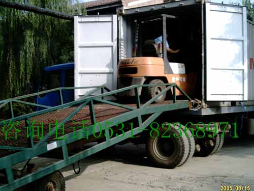 移動式液壓裝卸過橋廣泛用于無裝卸設(shè)備的貨臺及流動裝卸場所,是與叉車配合使用的貨物裝卸輔助設(shè)備。借助該設(shè)備,叉車能直接駛?cè)肫嚰b箱內(nèi)部進行批量裝卸作業(yè)。只需單人操作,不需動力電源。實現(xiàn)貨物的安全快速裝卸,既可減輕勞動速度,又能成倍提高裝卸作業(yè)效率,加快物料流通速度,獲取更大經(jīng)濟效益。
